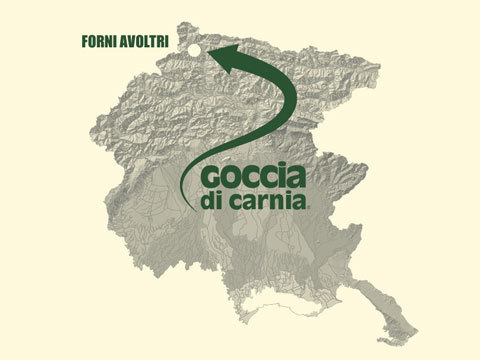 Die von Bergen umgebene Gemeinde Forni Avoltri, in der sich die Produktionsstätte von Goccia di Carnia befindet, ist die nördlichste Ortschaft Karniens: Der Name geht auf die Öfen (italienisch: forni) zurück, die von den früheren Bewohnern zum Schmelzen der in den Gruben des Monte Avanza gewonnenen Metalle verwendet wurden.